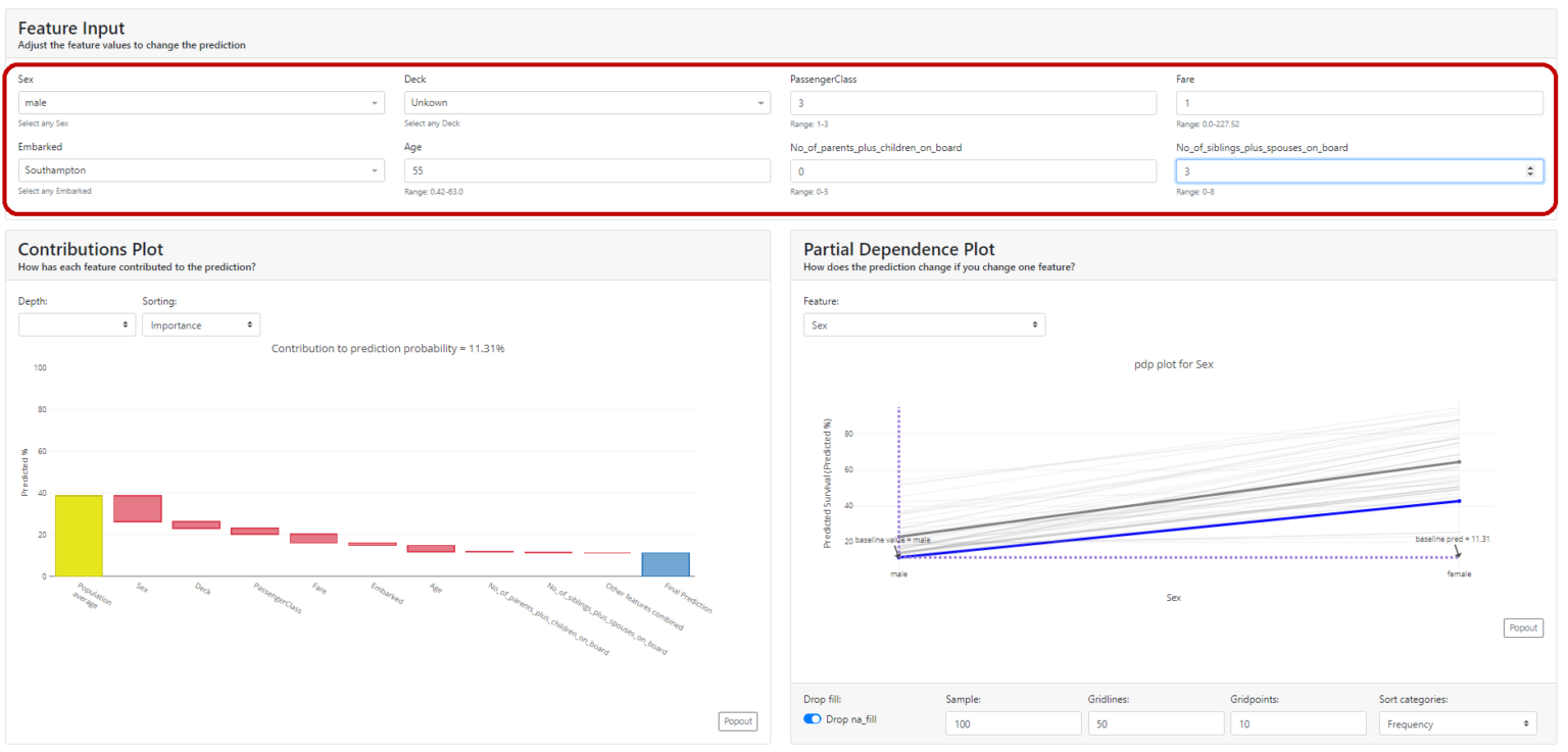 An example to tinker around on herokuapp: https://titanicexplainer.herokuapp.com/