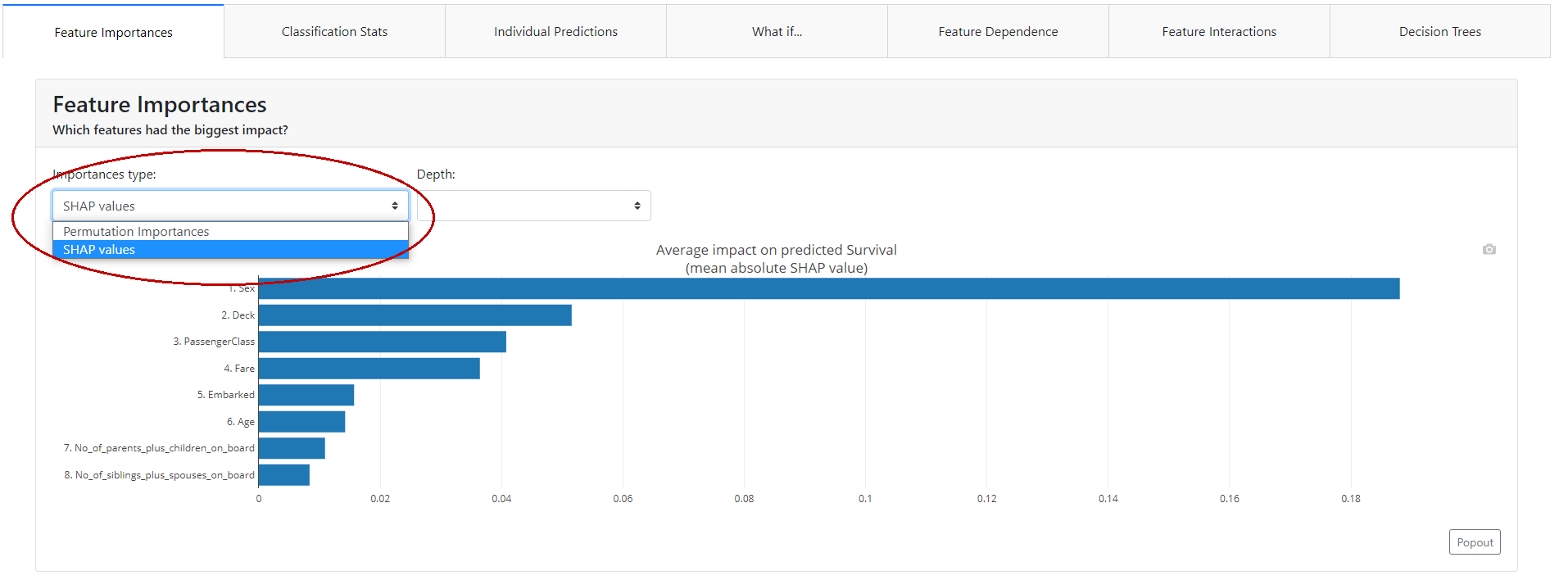 title="Titanic Explainer", # defaults to "Model Explainer"