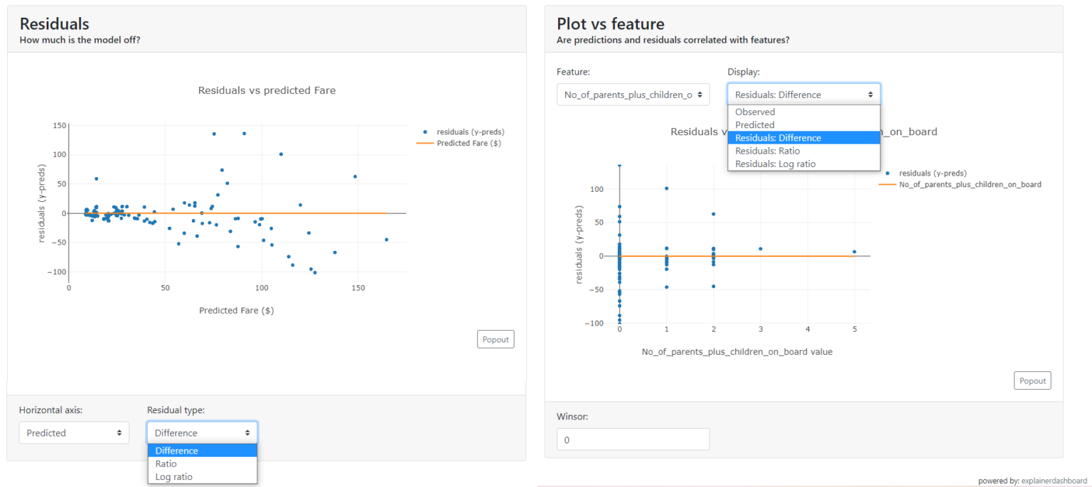 Explainer Dashboard customizes the metrics and charts according to the problem the model solves (classification / regression).